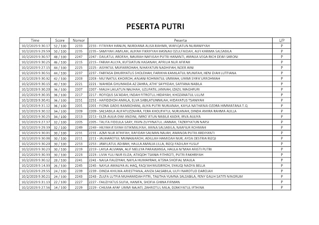 HASIL KUALIFIKASI MFQ PADA MTQ JATIM XXX TAHUN 2023 DI KOTA PASURUAN